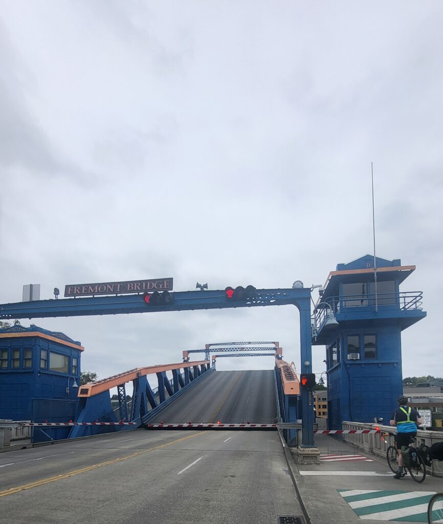 Le Fremont Bridge, inauguré en 1917, relie les quartiers de Fremont et Queen Anne en enjambant le canal de navigation. Reconnaissable à ses couleurs bleu et orange, ce pont à bascule s’ouvre plusieurs milliers de fois par an pour laisser passer les bateaux.